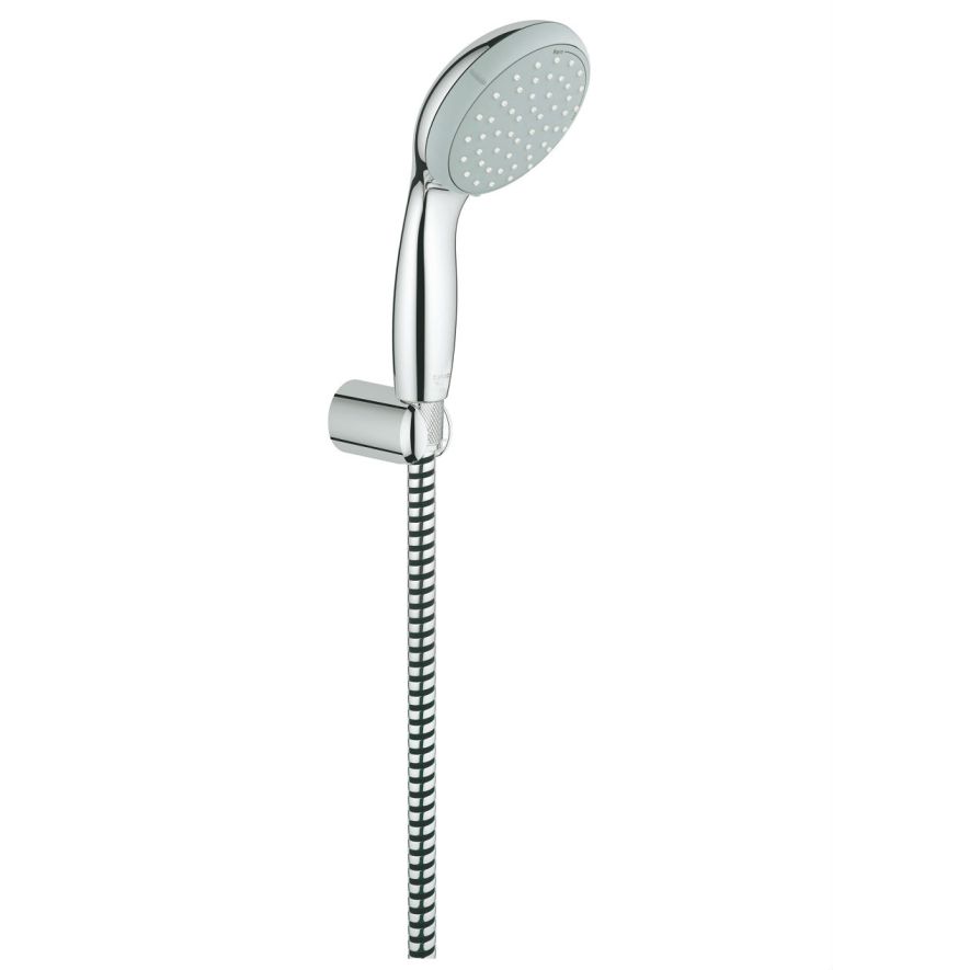 Σετ ντους δύο δεσμών με στήριγμα GROHE, της σειράς New Tempesta μοντέλο 100 (27803). Ιδανικό για οικογένειες με μικρά παιδιά. Δημιουργήθηκε για να ενισχύσει τους τελευταίους σύγχρονους χώρους μπάνιου και να συμπληρώσει μια ευρεία επιλογή των συλλογών μπαταριών GROHE, το New Tempesta συνδυάζει την απόδοση της τεχνολογίας GROHE DreamSpray ® με την κομψή εμφάνιση και τα πρακτικά χαρακτηριστικά. Ένα αντικραδασμικό δαχτυλίδι από σιλικόνη, το οποίο αναδιπλώνεται γύρω από την πλάκα ψεκασμού του ντους χειρός, αποτρέπει την πρόκληση ζημιάς στο δίσκο του ντους ή στο μπάνιο αν το ντους πέσει κάνοντας τον σχεδιασμό μια ιδανική επιλογή για οικογένειες με μικρά παιδιά.