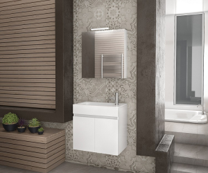 Έπιπλο μπάνιου Drop της σειράς Economic μοντέλο MAGNOLIA 55 White. Κρεμαστή βάση επίπλου, ενιαίος αποθηκευτικός χώρος δύο πόρτες, νιπτήρας πορσελάνης προφίλ 2 cm, καθρέπτης κρεμαστός από λευκή γυαλιστερή λάκα, φωτιστικό led. Κομψότητα με στυλ. Μοντέρνες λύσεις που ξεχωρίζουν, για ένα μπάνιο με προσωπικότητα.
