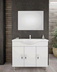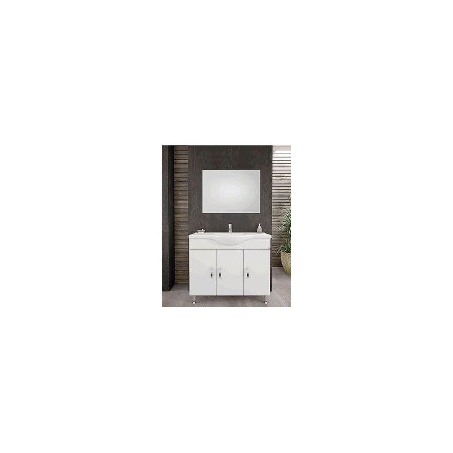 Έπιπλο μπάνιου Drop της σειράς Economic μοντέλο ALBA 100 White 3 100cm. Επιδαπέδια βάση επίπλου, δύο αποθηκευτικοί χώροι τρείς πόρτες, νιπτήρας πορσελάνης Monoblock, καθρέπτης κρεμαστός. Κομψότητα με στυλ. Μοντέρνες λύσεις που ξεχωρίζουν, για ένα μπάνιο με προσωπικότητα.