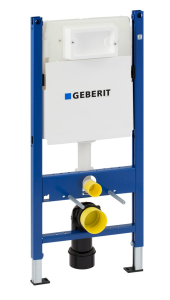 Εντοιχιζόμενο καζανάκι σε τοίχο γυψοσανίδας, πλαισιωμένο με στοιχείο στήριξης για κρεμαστή λεκάνη GEBERIT της σειράς Delta Line μοντέλο Duofix 458.160. Η Geberit σας προσφέρει την δυνατότητα της επιλογής, ανάμεσα σε διαφορετικά υλικά, χρώματα και σχήματα, ώστε να βρείτε ακριβώς αυτό που ταιριάζει στο δικό σας μπάνιο.