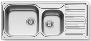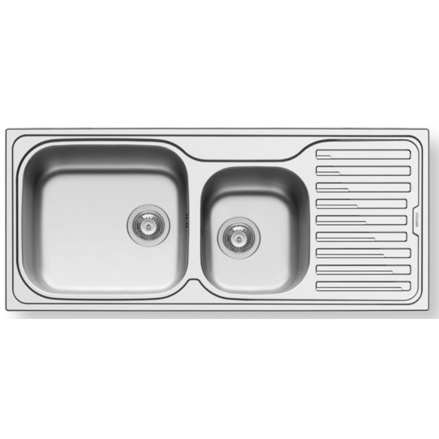 Ανοξείδωτος ένθετος νεροχύτης, δύο γούρνες και ποδιά, INOX Λείο PYRAMIS μοντέλο: Amaltia Plus (116x50) 2B 1D Αριστερό. Οι ανοξείδωτοι νεροχύτες PYRAMIS είναι κατασκευασμένοι, αποκλειστικά και μόνο, από άριστης ποιότητάς ατσάλι (CrNi 18/10), τύπου AISI 304. Το άριστης ποιότητας ανοξείδωτο υλικό είναι κατάλληλο για επαφή με τρόφιμα. Παρουσιάζει εξαιρετική αντοχή σε ισχυρά οξέα όπως το νιτρικό οξύ, σε αλκαλικά διαλύματα καθώς και σε διαλύματα οργανικών και ανόργανων αλάτων, ώστε ο νεροχύτης να παραμένει αναλλοίωτος για μια ζωή.