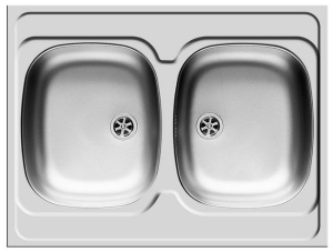 Ανοξείδωτος επικαθήμενος νεροχύτης, δύο γούρνες χωρίς ποδιά, INOX Σατινέ PYRAMIS μοντέλο: International (80x60) 2B. Οι ανοξείδωτοι νεροχύτες PYRAMIS είναι κατασκευασμένοι, αποκλειστικά και μόνο, από άριστης ποιότητάς ατσάλι (CrNi 18/10), τύπου AISI 304. Το άριστης ποιότητας ανοξείδωτο υλικό είναι κατάλληλο για επαφή με τρόφιμα. Παρουσιάζει εξαιρετική αντοχή σε ισχυρά οξέα όπως το νιτρικό οξύ, σε αλκαλικά διαλύματα καθώς και σε διαλύματα οργανικών και ανόργανων αλάτων, ώστε ο νεροχύτης να παραμένει αναλλοίωτος για μια ζωή.