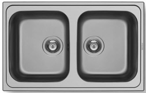 Ανοξείδωτος ένθετος νεροχύτης, δύο γούρνες χωρίς ποδιά, INOX Λείος PYRAMIS μοντέλο: Athena (79x50) 2B. Οι ανοξείδωτοι νεροχύτες PYRAMIS είναι κατασκευασμένοι, αποκλειστικά και μόνο, από άριστης ποιότητάς ατσάλι (CrNi 18/10), τύπου AISI 304. Το άριστης ποιότητας ανοξείδωτο υλικό είναι κατάλληλο για επαφή με τρόφιμα. Παρουσιάζει εξαιρετική αντοχή σε ισχυρά οξέα όπως το νιτρικό οξύ, σε αλκαλικά διαλύματα καθώς και σε διαλύματα οργανικών και ανόργανων αλάτων, ώστε ο νεροχύτης να παραμένει αναλλοίωτος για μια ζωή.
