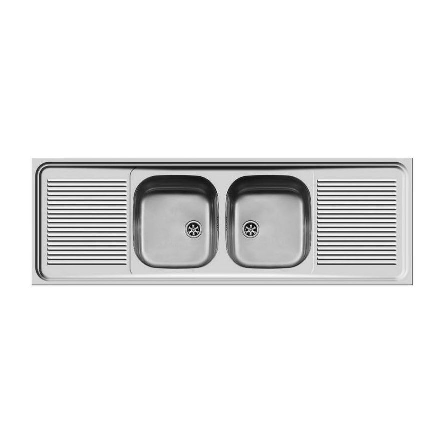 Ανοξείδωτος επικαθήμενος νεροχύτης, δύο γούρνες και δύο ποδιές, INOX Λείο PYRAMIS μοντέλο: International (150x50) 2B 2D. Οι ανοξείδωτοι νεροχύτες PYRAMIS είναι κατασκευασμένοι, αποκλειστικά και μόνο, από άριστης ποιότητάς ατσάλι (CrNi 18/10), τύπου AISI 304. Το άριστης ποιότητας ανοξείδωτο υλικό είναι κατάλληλο για επαφή με τρόφιμα. Παρουσιάζει εξαιρετική αντοχή σε ισχυρά οξέα όπως το νιτρικό οξύ, σε αλκαλικά διαλύματα καθώς και σε διαλύματα οργανικών και ανόργανων αλάτων, ώστε ο νεροχύτης να παραμένει αναλλοίωτος για μια ζωή.