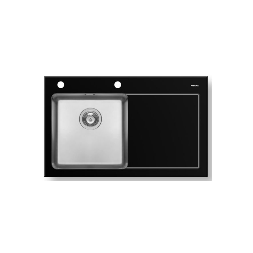 Ανοξείδωτος ένθετος νεροχύτης, μία γούρνα με ποδιά δεξιά, INOX Μαύρο γυαλί PYRAMIS μοντέλο: Crystalon 1B 1D. Οι ανοξείδωτοι νεροχύτες PYRAMIS είναι κατασκευασμένοι, αποκλειστικά και μόνο, από άριστης ποιότητάς ατσάλι (CrNi 18/10), τύπου AISI 304. Το άριστης ποιότητας ανοξείδωτο υλικό είναι κατάλληλο για επαφή με τρόφιμα. Παρουσιάζει εξαιρετική αντοχή σε ισχυρά οξέα όπως το νιτρικό οξύ, σε αλκαλικά διαλύματα καθώς και σε διαλύματα οργανικών και ανόργανων αλάτων, ώστε ο νεροχύτης να παραμένει αναλλοίωτος για μια ζωή.