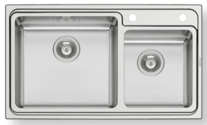 Ανοξείδωτος ένθετος νεροχύτης, δύο γούρνες χωρίς ποδιά, INOX Λείο PYRAMIS μοντέλο: Studio 2B. Οι ανοξείδωτοι νεροχύτες PYRAMIS είναι κατασκευασμένοι, αποκλειστικά και μόνο, από άριστης ποιότητάς ατσάλι (CrNi 18/10), τύπου AISI 304. Το άριστης ποιότητας ανοξείδωτο υλικό είναι κατάλληλο για επαφή με τρόφιμα. Παρουσιάζει εξαιρετική αντοχή σε ισχυρά οξέα όπως το νιτρικό οξύ, σε αλκαλικά διαλύματα καθώς και σε διαλύματα οργανικών και ανόργανων αλάτων, ώστε ο νεροχύτης να παραμένει αναλλοίωτος για μια ζωή.