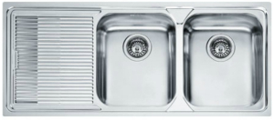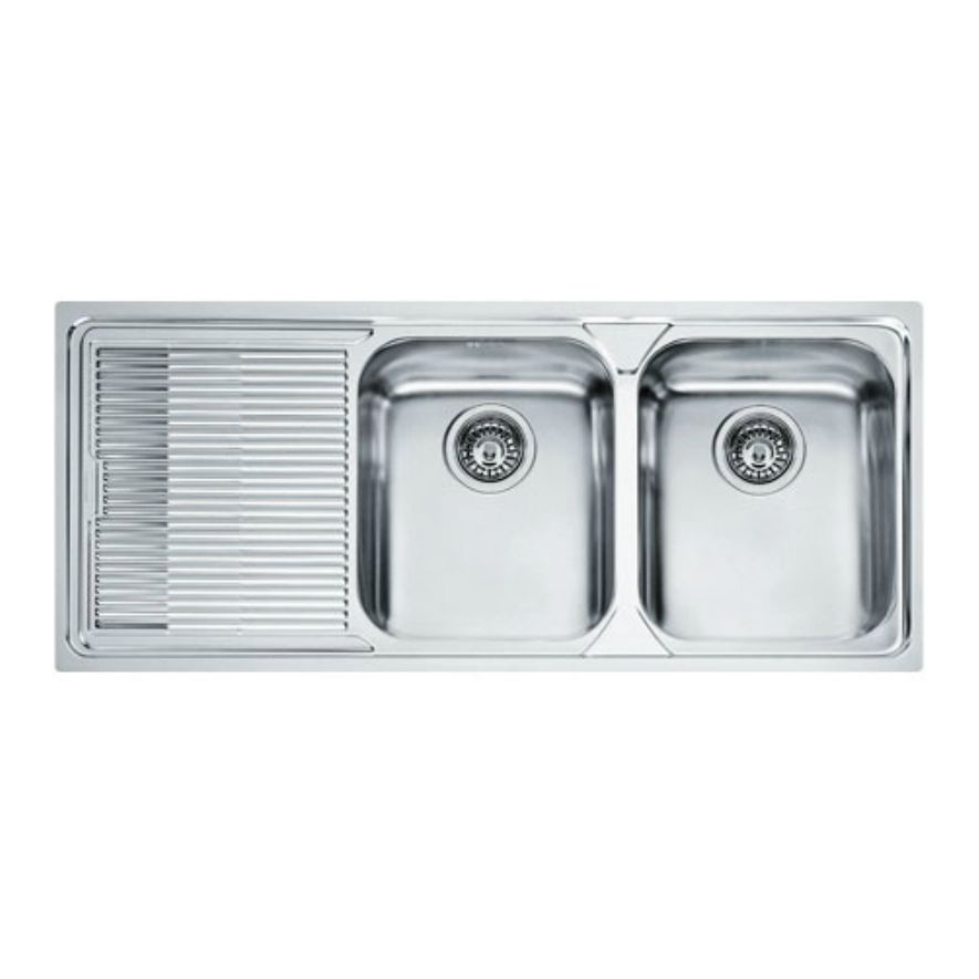 Ανοξείδωτος ένθετος νεροχύτης με δύο γούρνες και ποδιά αριστερά, INOX σαγρέ FRANKE της συλλογής: Logica μοντέλο: LOL 621.
