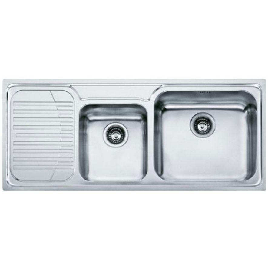 Ανοξείδωτος ένθετος νεροχύτης με δύο γούρνες και ποδιά αριστερά, INOX σαγρέ FRANKE της συλλογής: New Infinito μοντέλο: INL 621-N.