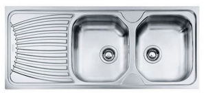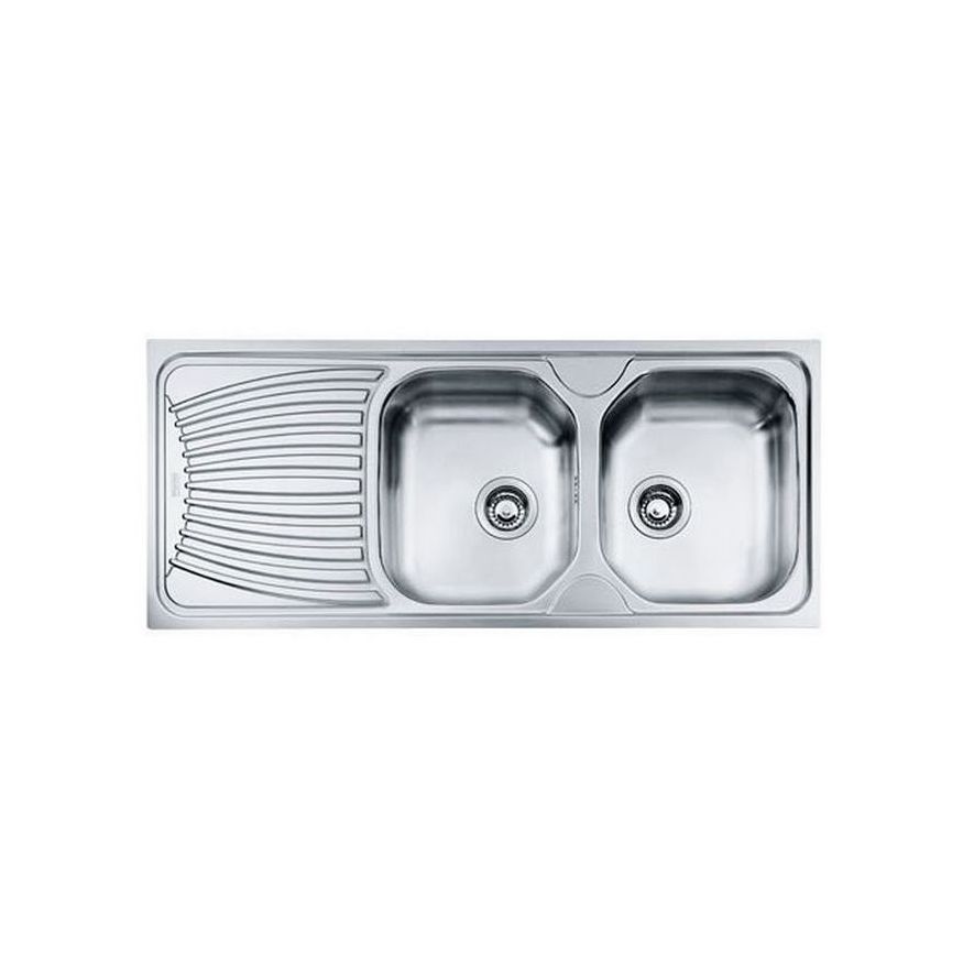 Ανοξείδωτος ένθετος νεροχύτης, αντιστρεφόμενος με δύο συμμετρικές γούρνες και ποδιά, INOX σαγρέ FRANKE της συλλογής: Alfa 3 ½¨ μοντέλο: AFL 621.