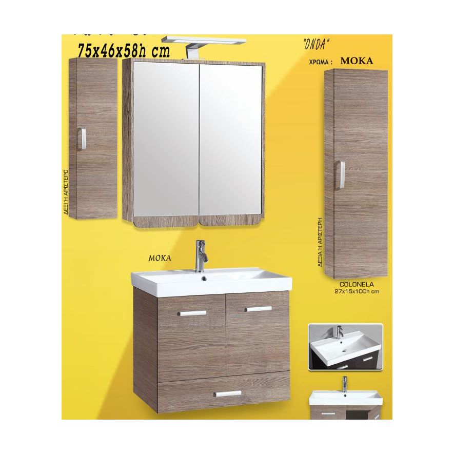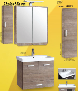 Κρεμαστό έπιπλο μπάνιου σύνθεση πλήρης GLORIA της σειράς ADA-UP χρώματος MOKA 75x46x58h cm. Στα έπιπλα μπάνιου προκαλούμε τις αισθήσεις δημιουργώντας έπιπλα μπάνιου υψηλής ποιότητας και σύγχρονου design.