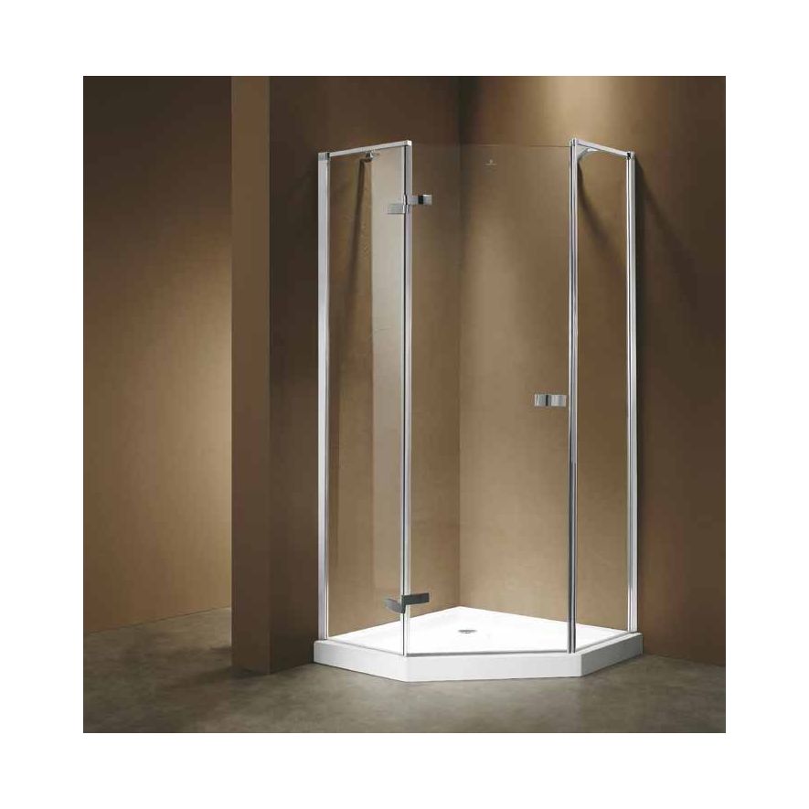 Καμπίνα με ντουζιέρα πεντάγωνη γωνιακής τοποθέτησης, Karag μοντέλο PENTAGONAL, κρύσταλλο ασφαλείας 6 mm. Tempered διαφανές, μεταλλικά μέρη μπρούτζινα επινικελωμένα.