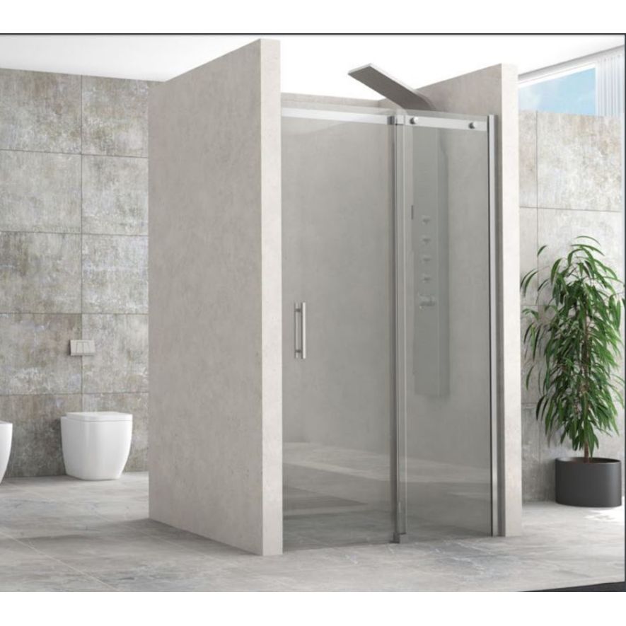 Καμπίνα ντουζιέρας συρόμενη ευθύγραμμη-πόρτα βαρέως τύπου, Karag μοντέλο RIGEL 500 98/100x195 h cm, κρύσταλλο ασφαλείας 8 mm Tempered διαφανές, μεταλλικά μέρη προφίλ ανοδιωμένου αλουμινίου.