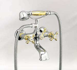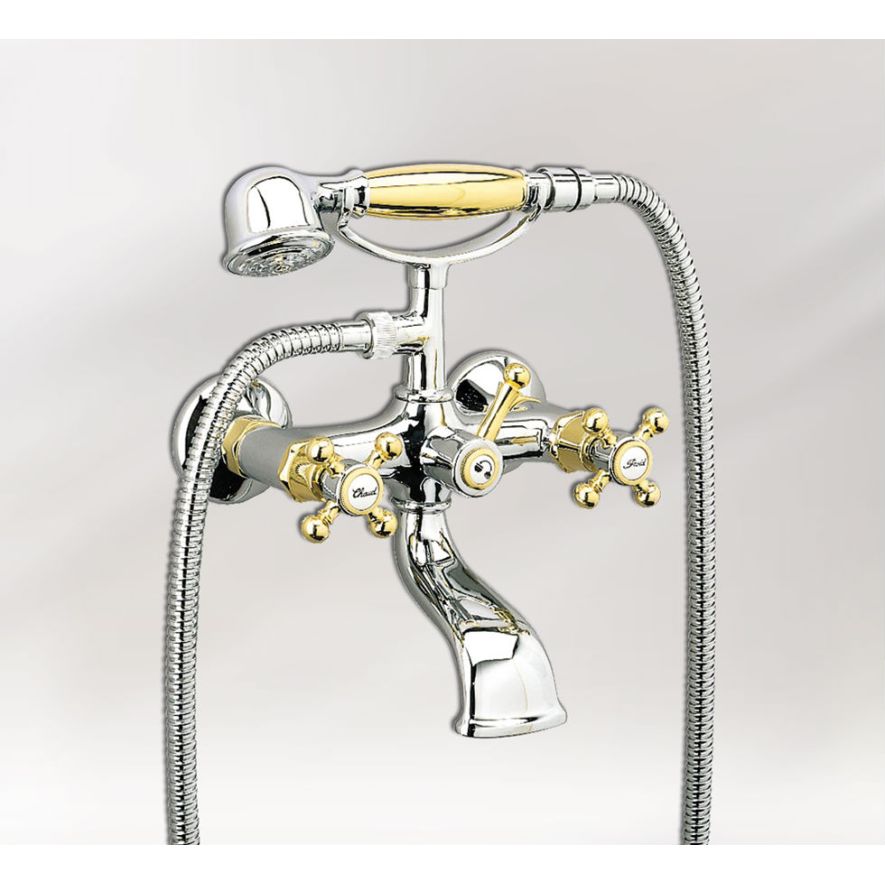 Μπαταρία λουτρού με ντους χειρός και στήριγμα πλήρες σετ, φινίρισμα χρωμέ / χρυσό, Bugnatese της σειράς LADY μοντέλο 900. Όλες οι σειρές των μπαταριών Bugnatese έχουν σχεδιαστεί με βάση την προσοχή στη λεπτομέρεια και την καινοτομία. Όλα τα προϊόντα έχουν ιδανική σχέση ποιότητας – τιμής.