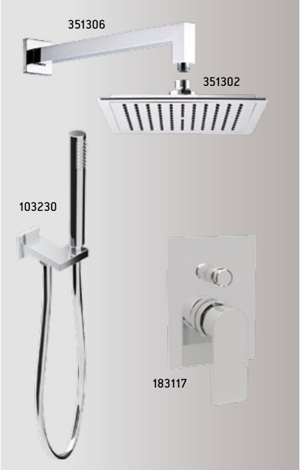 Μείκτης ντουζιέρας - λουτρού δύο εξόδων με εκτροπέα, εντοιχισμού, Teorema της σειράς XS μοντέλο 183117, παροχή νερού CODE 103230, με στήριγμα, ντούς χειρός & σπιράλ metalflex 1,5 m, βραχίονας τοίχου 351306 35 εκ., κεφαλή ντούς 351302 20 x 20 εκ. Όλες οι σειρές των μπαταριών της Teorema έχουν ένα κοινό παρονομαστή: τη λειτουργικότητα. Κάθε προϊόν έχει σχεδιαστεί για να σέβεται την αισθητική, το χρόνο και το περιβάλλον, με ένα βλέμμα προς τις τάσεις της στιγμής.