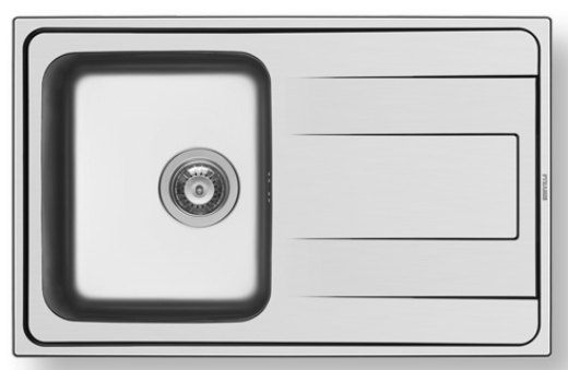 Ανοξείδωτος ένθετος νεροχύτης, μία γούρνα και ποδιά αντιστρεφόμενος, INOX Σαγρέ PYRAMIS μοντέλο: Aela 79x50 1B 1D. Οι ανοξείδωτοι νεροχύτες PYRAMIS είναι κατασκευασμένοι, αποκλειστικά και μόνο, από άριστης ποιότητάς ατσάλι (CrNi 18/10), τύπου AISI 304. Το άριστης ποιότητας ανοξείδωτο υλικό είναι κατάλληλο για επαφή με τρόφιμα. Παρουσιάζει εξαιρετική αντοχή σε ισχυρά οξέα όπως το νιτρικό οξύ, σε αλκαλικά διαλύματα καθώς και σε διαλύματα οργανικών και ανόργανων αλάτων, ώστε ο νεροχύτης να παραμένει αναλλοίωτος για μια ζωή.