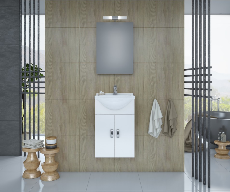 Έπιπλο μπάνιου Drop της σειράς Economic μοντέλο ALBA 45 White. Κρεμαστή βάση επίπλου, ενιαίος αποθηκευτικός χώρος δύο πόρτες, νιπτήρας πορσελάνης Monoblock, καθρέπτης κρεμαστός ερμάριο ενιαίος αποθηκευτικός χώρος - μία πόρτα από λευκή γυαλιστερή λάκα και φωτιστικό. Κομψότητα με στυλ. Μοντέρνες λύσεις που ξεχωρίζουν, για ένα μπάνιο με προσωπικότητα.