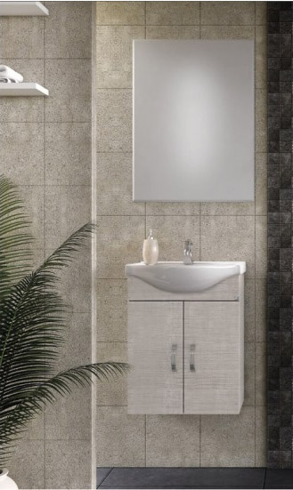 Έπιπλο μπάνιου Drop της σειράς Economic μοντέλο ALBA 45 Elm Wood 2. Κρεμαστή βάση επίπλου, ενιαίος αποθηκευτικός χώρος δύο πόρτες, νιπτήρας πορσελάνης Monoblock, καθρέπτης κρεμαστός, από μελαμίνη Elm Wood. Κομψότητα με στυλ. Μοντέρνες λύσεις που ξεχωρίζουν, για ένα μπάνιο με προσωπικότητα.