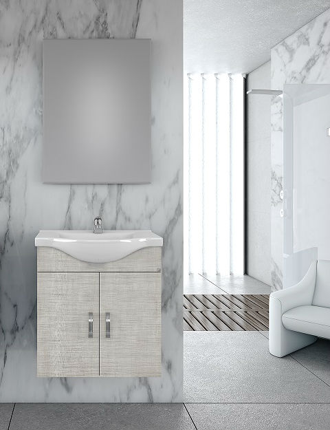 Έπιπλο μπάνιου Drop της σειράς Economic μοντέλο ALBA 65 Elm Wood 3 65cm. Κρεμαστή βάση επίπλου, ενιαίος αποθηκευτικός χώρος δύο πόρτες από Elm Wood μελαμίνη, νιπτήρας πορσελάνης Monoblock, καθρέπτης κρεμαστός. Κομψότητα με στυλ. Μοντέρνες λύσεις που ξεχωρίζουν, για ένα μπάνιο με προσωπικότητα.
