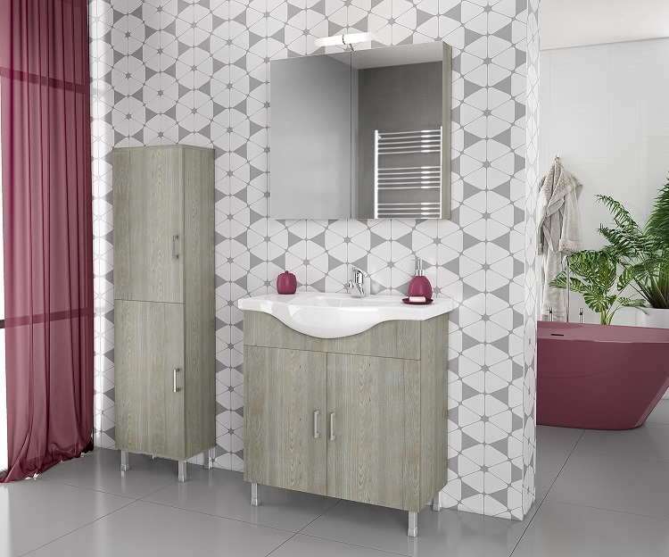 Έπιπλο μπάνιου Drop της σειράς Economic μοντέλο ALBA 80 Brown 1 & Mirror Wall. Επιδαπέδια βάση επίπλου, ενιαίος αποθηκευτικός χώρος δύο πόρτες, νιπτήρας πορσελάνης Monoblock, καθρέπτης κρεμαστός με ενιαίο αποθηκευτικό χώρο, δύο πόρτες από καφέ Brown μελαμίνη και ένα φωτιστικό. Κομψότητα με στυλ. Μοντέρνες λύσεις που ξεχωρίζουν, για ένα μπάνιο με προσωπικότητα.