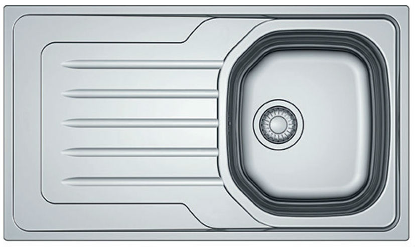 Ανοξείδωτος ένθετο νεροχύτης αντιστρεφόμενος με ποδιά, INOX Σαγρέ FRANKE της συλλογής: New Value μοντέλο: OLL 611-86. Η Franke κατασκευάζει τους ανοξείδωτες νεροχύτες της από εξαιρετικής ποιότητας ανοξείδωτο χάλυβα AISI 304 18/10 (Cr/Ni) ανώτερο από οποιαδήποτε άλλη κατηγορία ανοξείδωτου.