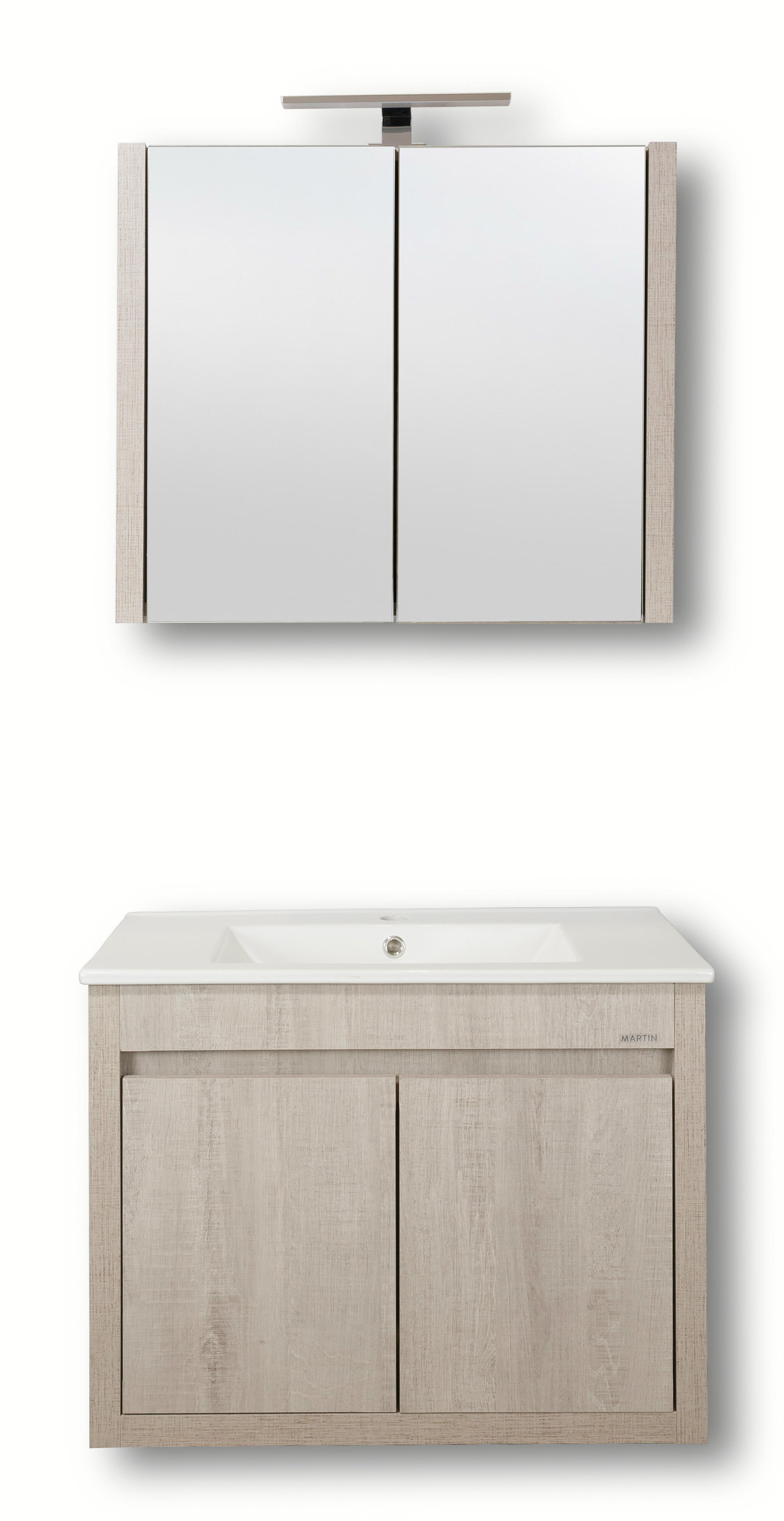 Έπιπλο μπάνιου σετ MARTIN της σειράς ALPIN μοντέλο LISBON 60. Κρεμαστή βάση επίπλου, αποθηκευτικός χώρος, νιπτήρας πορσελάνης, καθρέπτης κρεμαστός και φωτιστικό. Το σετ επίπλου μπάνιου ALPIN είναι προϊόν με μοντέρνο σχεδιασμό και minimal αισθητική. Η σειρά Alpin ακολουθεί τη σύγχρονη λογική των επίπλων χωρίς πόμολα προσφέροντας έναν κόσμο εργονομίας και δημιουργικών λύσεων.