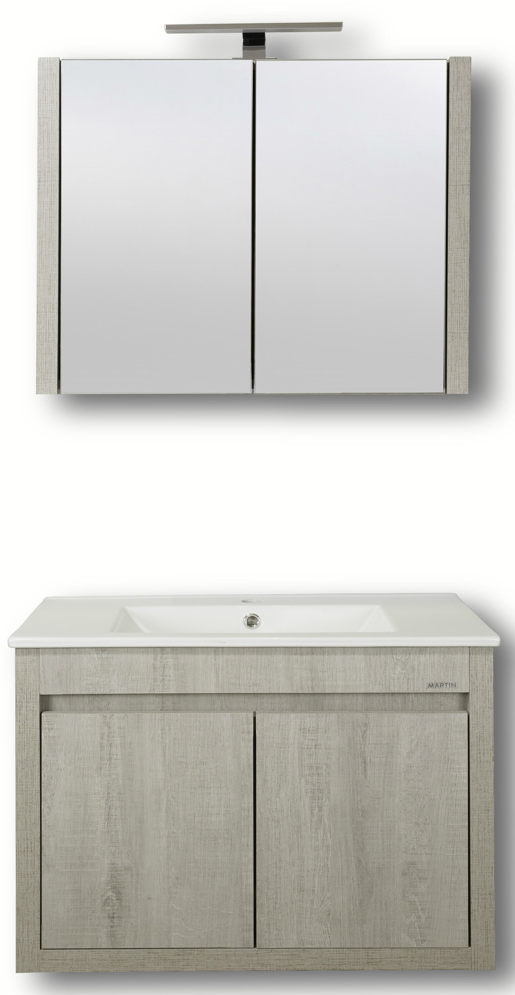 Έπιπλο μπάνιου σετ MARTIN της σειράς ALPIN μοντέλο LISBON 75. Κρεμαστή βάση επίπλου, αποθηκευτικός χώρος, νιπτήρας πορσελάνης, καθρέπτης κρεμαστός και φωτιστικό. Το σετ επίπλου μπάνιου ALPIN είναι προϊόν με μοντέρνο σχεδιασμό και minimal αισθητική. Η σειρά Alpin ακολουθεί τη σύγχρονη λογική των επίπλων χωρίς πόμολα προσφέροντας έναν κόσμο εργονομίας και δημιουργικών λύσεων.