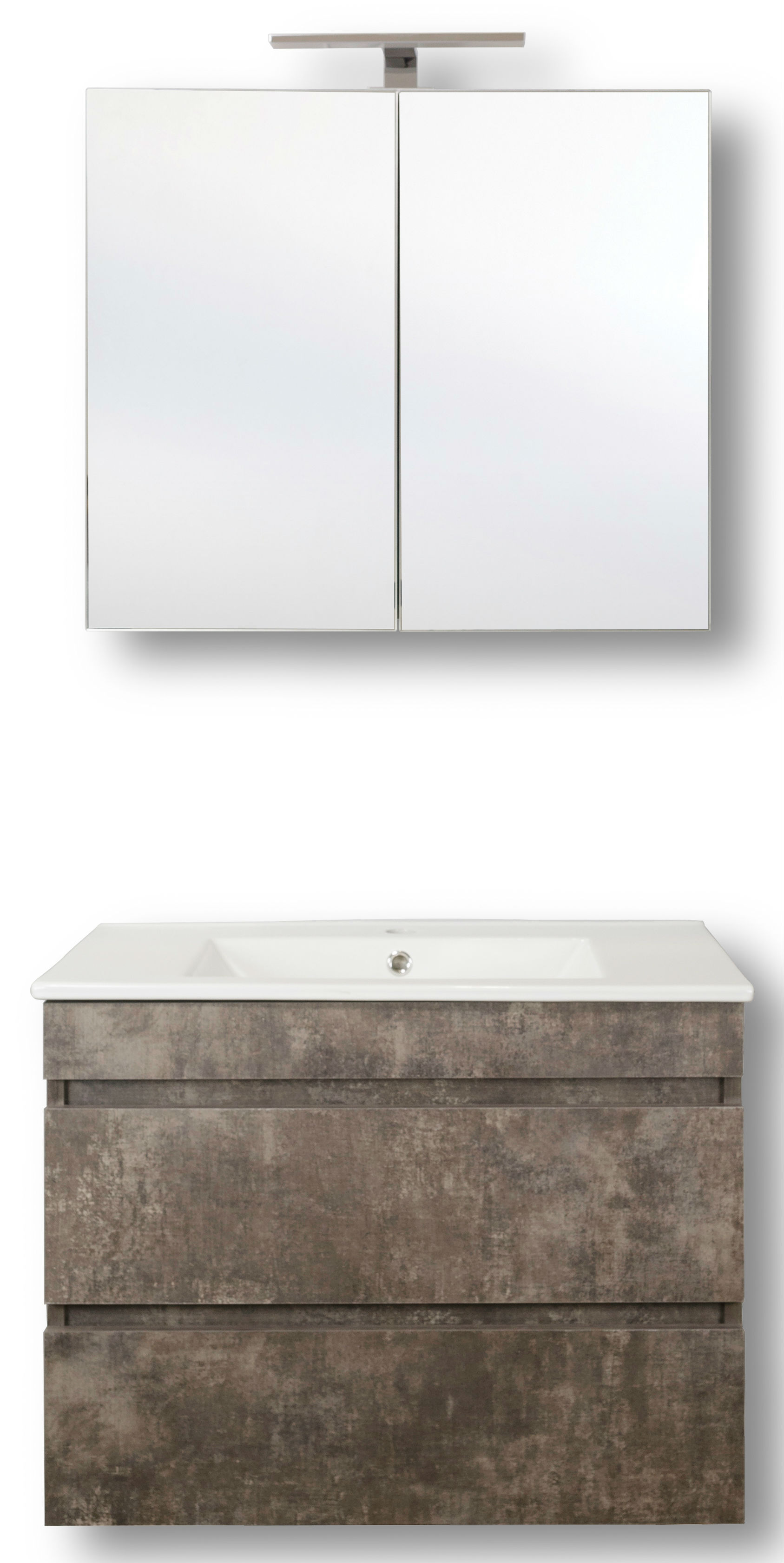 Έπιπλο μπάνιου σύνθεση μίνιμαλ MARTIN της σειράς FIESTA μοντέλο VARSOVA 75. Κρεμαστή βάση επίπλου, με δυο ευρύχωρα συρτάρια για αποθηκευτικό χώρο, νιπτήρας πορσελάνης, καθρέπτης κρεμαστός και φωτιστικό. Η σειρά επίπλων μπάνιου FIESTA ακολουθεί τη λογική hand-less και ενσωματώνει όλες τις σύγχρονες τάσεις στο σχεδιασμό επίπλων μπάνιου. Τα έπιπλα μπάνιου χωρίς πόμολα προσφέρουν δημιουργικές λύσεις και απαντούν στην ανάγκη για ένα μπάνιο με νεανική αύρα.