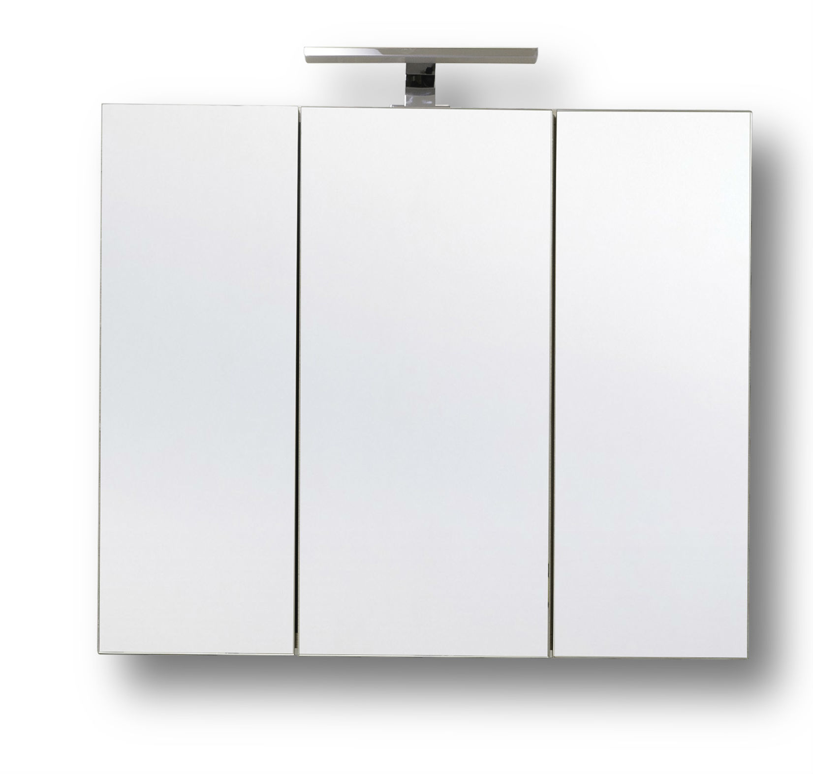 Έπιπλο μπάνιου καθρέπτης με φωτιστικό MARTIN της σειράς FIESTA μοντέλο VARSOVA 90. Κρεμαστός καθρέπτης, με τρεις πόρτες και δύο αποθηκευτικούς χώρους και φωτιστικό LED. Η σειρά επίπλων μπάνιου FIESTA ακολουθεί τη λογική hand-less και ενσωματώνει όλες τις σύγχρονες τάσεις στο σχεδιασμό επίπλων μπάνιου. Τα έπιπλα μπάνιου χωρίς πόμολα προσφέρουν δημιουργικές λύσεις και απαντούν στην ανάγκη για ένα μπάνιο με νεανική αύρα.