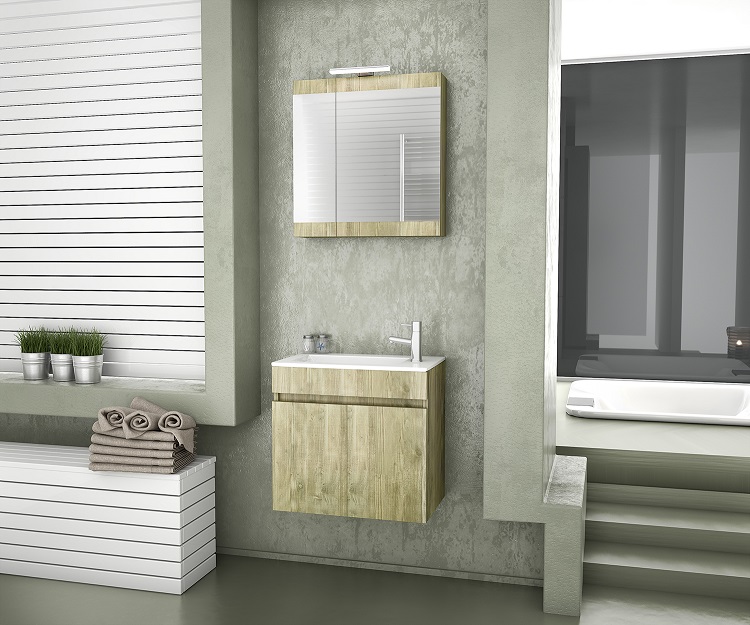 Έπιπλο μπάνιου Drop της σειράς Economic μοντέλο MAGNOLIA 55 Gold Oak. Κρεμαστή βάση επίπλου, ενιαίος αποθηκευτικός χώρος δύο πόρτες, νιπτήρας πορσελάνης προφίλ 2 cm, καθρέπτης κρεμαστός από μελαμίνη Gold Oak, φωτιστικό led. Κομψότητα με στυλ. Μοντέρνες λύσεις που ξεχωρίζουν, για ένα μπάνιο με προσωπικότητα.