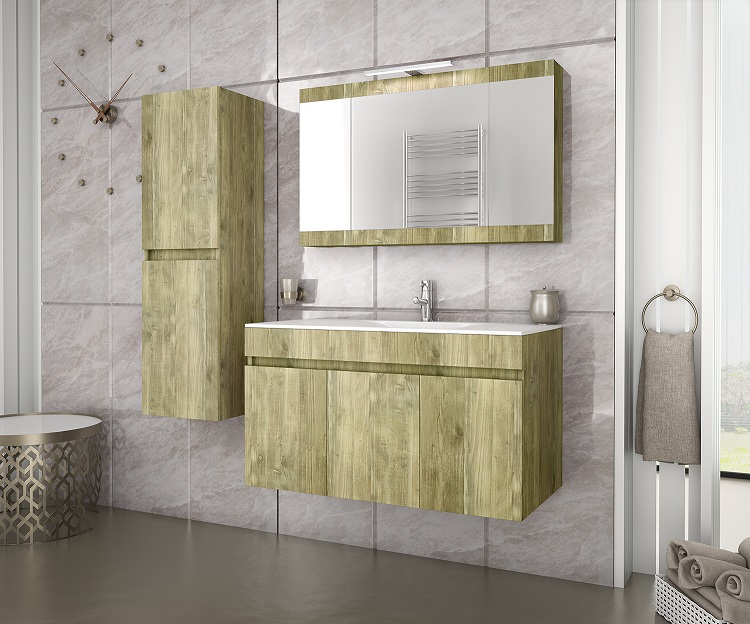 Έπιπλο μπάνιου Drop της σειράς Economic μοντέλο MAGNOLIA 90 Gold Oak. Κρεμαστή βάση επίπλου, δύο αποθηκευτικοί χώροι τρείς πόρτες, νιπτήρας πορσελάνης προφίλ 2 cm, καθρέπτης κρεμαστός, ανακλινόμενη μεσαία πόρτα από μελαμίνη Gold Oak, φωτιστικό led. Κομψότητα με στυλ. Μοντέρνες λύσεις που ξεχωρίζουν, για ένα μπάνιο με προσωπικότητα.