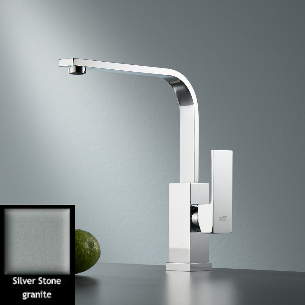 Μπαταρία κουζίνας υψηλό περιστρεφόμενο ρουξούνι φινίρισμα Granite Silver Stone, Carron Phoenix KUBO 35510. Διατίθεται επιπλέον σε αποχρώσεις χρωμέ & Granite: White, Graphite και Oyster. Όλες οι σειρές των μπαταριών Carron Phoenix έχουν σχεδιαστεί για να σέβονται την αισθητική και το περιβάλλον. Όλα τα προϊόντα έχουν ιδανική σχέση ποιότητας – τιμής.