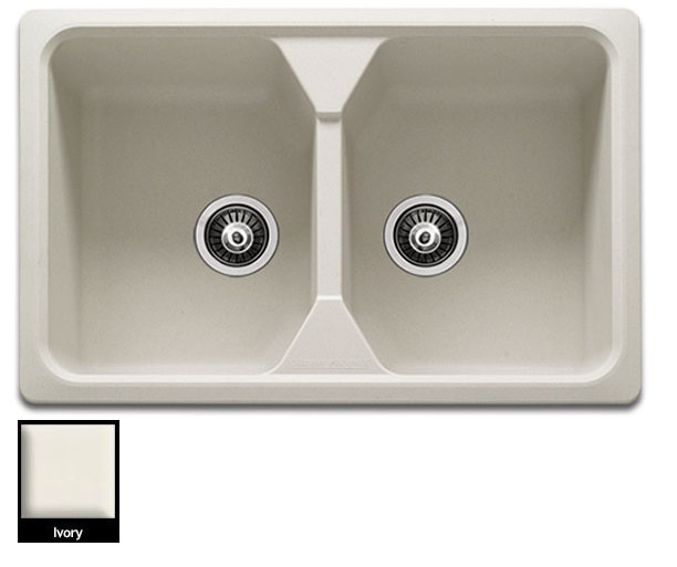 Ένθετος νεροχύτης γρανίτη με δύο συμμετρικές γούρνες χωρίς ποδιά, Carron Phoenix μοντέλο: Debut 200 Ivory 78,4x51 cm. Διατίθεται επιπλέον σε αποχρώσεις Beige, White, Graphite Metallic, Cappuccino & Oyster Metallic. Μια πλήρης γκάμα νεροχυτών, που διακρίνονται για την εξαιρετική τους αντοχή, την υψηλή ποιότητα και τα φυσικά χρώματα, συνδυάζουν άψογα την κομψότητα και την εργονομία.