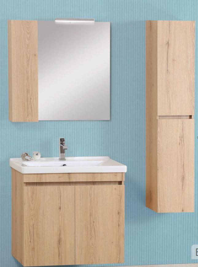Έπιπλο μπάνιου σετ PRO BAGNO της σειράς ELEGANT μοντέλο CODE 951 B 80 cm αποχρώσεις MDF Soft S1 - Prime. Κρεμαστή βάση επίπλου, αποθηκευτικός χώρος, νιπτήρας πορσελάνης, καθρέπτης με ντουλάπι κρεμαστός και φωτιστικό. H κρεμαστή στήλη και η μπαταρία δεν συμπεριλαμβάνεται στην τιμή.
