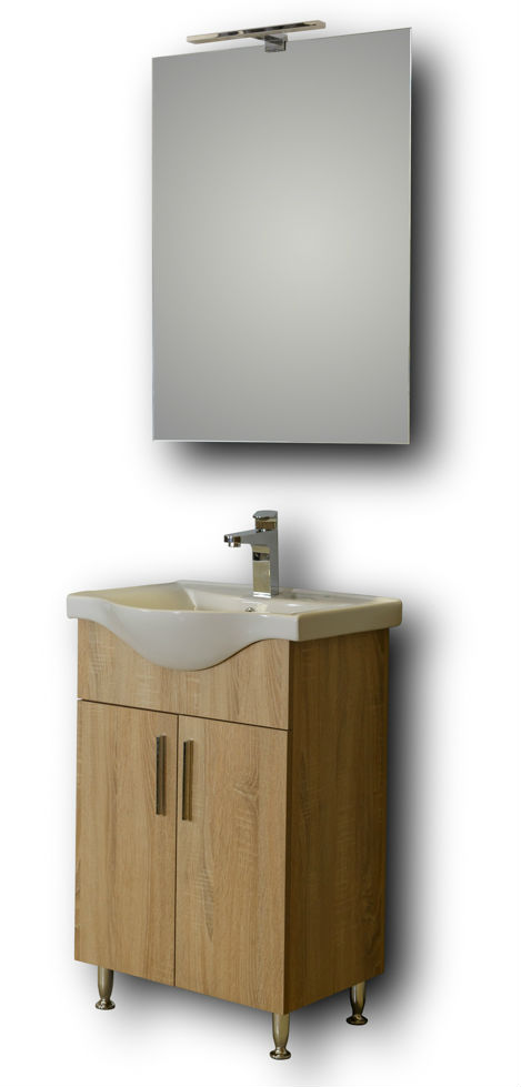 Έπιπλο μπάνιου σετ MARTIN της σειράς ECO μοντέλο SONOMA 55. Επιδαπέδια βάση επίπλου, ενιαίος αποθηκευτικός χώρος, νιπτήρας πορσελάνης, καθρέπτης κρεμαστός και φωτιστικό. Το σετ επίπλου μπάνιου είναι προϊόν με μοντέρνο σχεδιασμό και minimal αισθητική. H μπαταρία δεν συμπεριλαμβάνεται στην τιμή.