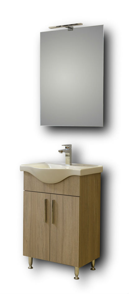 Έπιπλο μπάνιου σετ MARTIN της σειράς ECO μοντέλο SONOMA DARK 55. Επιδαπέδια βάση επίπλου, ενιαίος αποθηκευτικός χώρος, νιπτήρας πορσελάνης, καθρέπτης κρεμαστός και φωτιστικό. Το σετ επίπλου μπάνιου είναι προϊόν με μοντέρνο σχεδιασμό και minimal αισθητική. H μπαταρία δεν συμπεριλαμβάνεται στην τιμή.