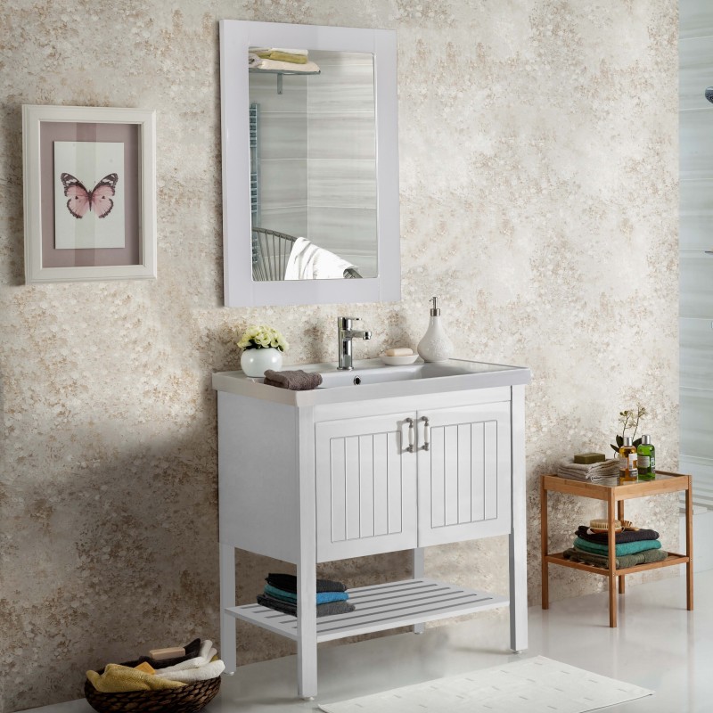 Έπιπλο μπάνιου σετ της MARTIN σειρά EFE WHITE 80 Ματ Λάκα. Επιδαπέδια βάση επίπλου, με αποθηκευτικό χώρο, δυο πορτάκια, νιπτήρας πορσελάνης, καθρέπτης κρεμαστός. Η σειρά επίπλων μπάνιου ακολουθεί τη λογική ενσωματώνει όλες τις σύγχρονες τάσεις στο σχεδιασμό επίπλων μπάνιου.