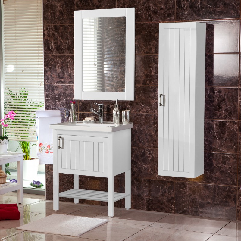 Έπιπλο μπάνιου σετ της MARTIN σειρά EFE WHITE 60 Ματ Λάκα. Επιδαπέδια βάση επίπλου, με αποθηκευτικό χώρο, ένα πορτάκι, νιπτήρας πορσελάνης, καθρέπτης κρεμαστός. Η σειρά επίπλων μπάνιου ακολουθεί τη λογική ενσωματώνει όλες τις σύγχρονες τάσεις στο σχεδιασμό επίπλων μπάνιου.