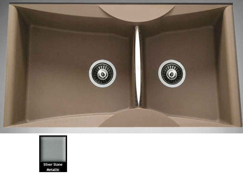 Νεροχύτης υποκαθήμενος ορυκτού γρανίτη με δύο γούρνες, αντιστρεφόμενος, Carron Phoenix μοντέλο: ZX 3200U Silver Stone 94x51,5 cm. Διατίθεται επιπλέον σε αποχρώσεις Beige, Graphite, White, Ivory, Oyster, Cappuccino και Espresso. Μια πλήρης γκάμα νεροχυτών, που διακρίνονται για την εξαιρετική τους αντοχή, την υψηλή ποιότητα και τα φυσικά χρώματα, συνδυάζουν άψογα την κομψότητα και την εργονομία.