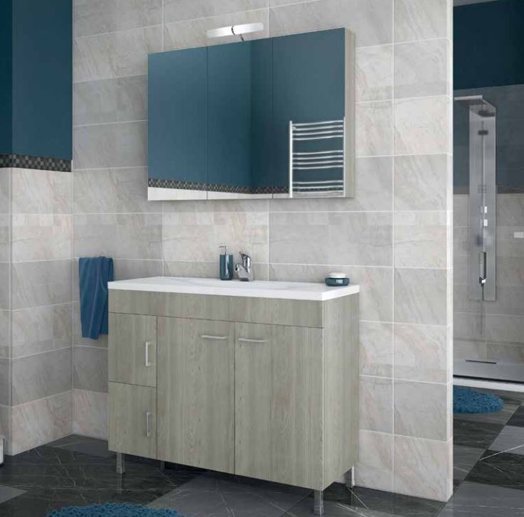 Έπιπλο μπάνιου Drop της σειράς Economic μοντέλο MILITOS 100 Brown 1 100cm. Επιδαπέδια βάση επίπλου, τρείς αποθηκευτικοί χώροι τέσσερις πόρτες, νιπτήρας πορσελάνης προφίλ 4 cm, καθρέπτης κρεμαστός με δύο αποθηκευτικούς χώρους 3 πόρτες από μελαμίνη Brown και φωτιστικό Led. Κομψότητα με στυλ. Μοντέρνες λύσεις που ξεχωρίζουν, για ένα μπάνιο με προσωπικότητα.