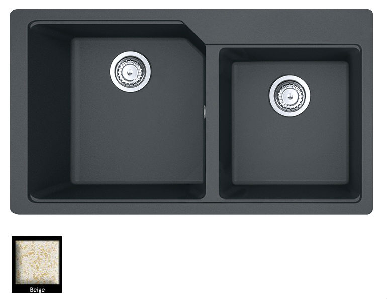 Ένθετος νεροχύτης ορυκτού γρανίτη με δύο ασύμμετρες γούρνες χωρίς ποδιά, Carron Phoenix μοντέλο: ARUBA 6205 Beige 86x50 cm. Διατίθεται επιπλέον σε αποχρώσεις Graphite, Black, Ivory, Oyster, White, Cappuccino, Espresso & Silver Stone Metallic. Μια πλήρης γκάμα νεροχυτών, που διακρίνονται για την εξαιρετική τους αντοχή, την υψηλή ποιότητα και τα φυσικά χρώματα, συνδυάζουν άψογα την κομψότητα και την εργονομία.