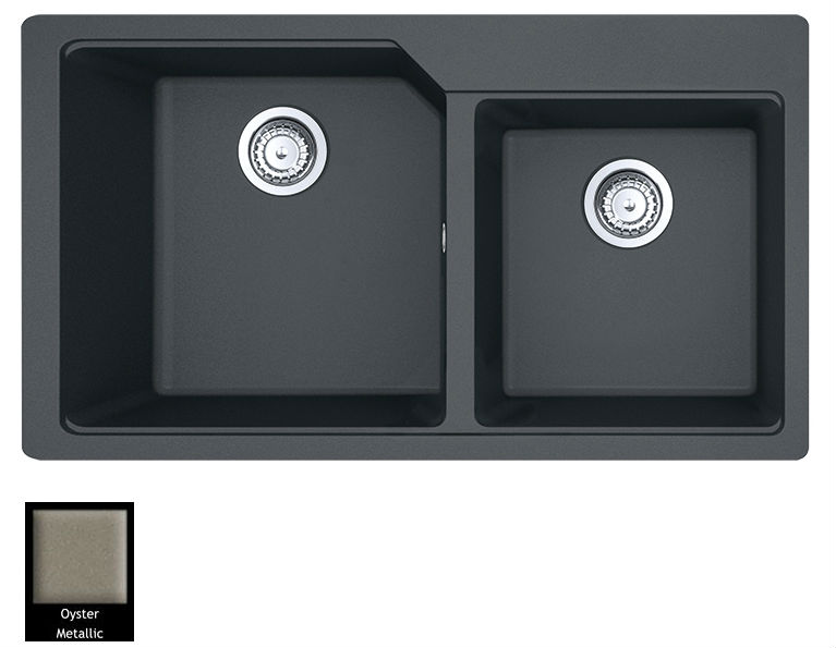 Ένθετος νεροχύτης ορυκτού γρανίτη με δύο ασύμμετρες γούρνες χωρίς ποδιά, Carron Phoenix μοντέλο: ARUBA 6205 Oyster 86x50 cm. Διατίθεται επιπλέον σε αποχρώσεις Graphite, Black, Ivory, Cappuccino, White, Beige, Espresso & Silver Stone Metallic. Μια πλήρης γκάμα νεροχυτών, που διακρίνονται για την εξαιρετική τους αντοχή, την υψηλή ποιότητα και τα φυσικά χρώματα, συνδυάζουν άψογα την κομψότητα και την εργονομία.