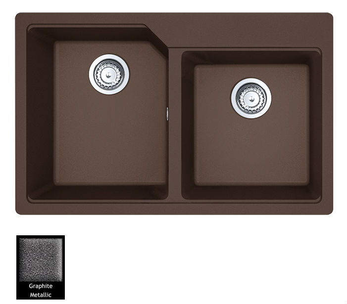 Ένθετος νεροχύτης ορυκτού γρανίτη με δύο ασύμμετρες γούρνες χωρίς ποδιά, Carron Phoenix μοντέλο: ARUBA 6200 Graphite 78x50 cm. Διατίθεται επιπλέον σε αποχρώσεις Cappuccino, White, Beige, Black, Ivory, Espresso, Oyster & Silver Stone. Μια πλήρης γκάμα νεροχυτών, που διακρίνονται για την εξαιρετική τους αντοχή, την υψηλή ποιότητα και τα φυσικά χρώματα, συνδυάζουν άψογα την κομψότητα και την εργονομία.