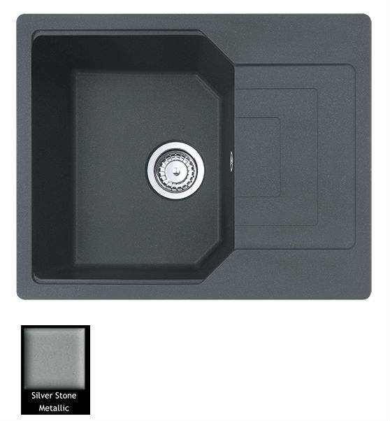 Ένθετος νεροχύτης γρανίτη μία γούρνα με ποδιά, Carron Phoenix μοντέλο: ARUBA 6160 Silver Stone 62x50 cm . Διατίθεται επιπλέον σε αποχρώσεις Graphite, Cappuccino, Black, White & Oyster. Μια πλήρης γκάμα νεροχυτών, που διακρίνονται για την εξαιρετική τους αντοχή, την υψηλή ποιότητα και τα φυσικά χρώματα, συνδυάζουν άψογα την κομψότητα και την εργονομία.