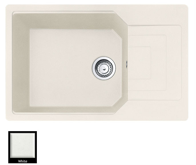Ένθετος νεροχύτης γρανίτη μία γούρνα με ποδιά, Carron Phoenix μοντέλο: ARUBA 6100 White 78x50 cm. Διατίθεται επιπλέον σε αποχρώσεις Cappuccino, Black, Ivory, Oyster, Graphite & Silver Stone. Μια πλήρης γκάμα νεροχυτών, που διακρίνονται για την εξαιρετική τους αντοχή, την υψηλή ποιότητα και τα φυσικά χρώματα, συνδυάζουν άψογα την κομψότητα και την εργονομία.