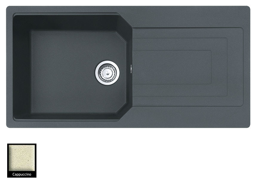 Ένθετος νεροχύτης γρανίτη αντιστρεφόμενος μία γούρνα με ποδιά, Carron Phoenix μοντέλο: ARUBA 6105 Cappuccino 100x50 cm. Διατίθεται επιπλέον σε αποχρώσεις White, Beige, Black, Ivory, Oyster, Graphite & Silver Stone. Μια πλήρης γκάμα νεροχυτών, που διακρίνονται για την εξαιρετική τους αντοχή, την υψηλή ποιότητα και τα φυσικά χρώματα, συνδυάζουν άψογα την κομψότητα και την εργονομία.