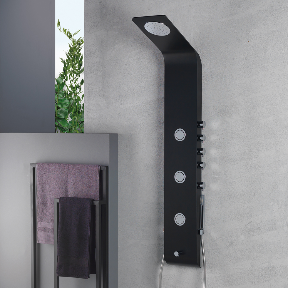 Στήλη ντους - υδρομασάζ θερμομικτική τεσσάρων εξόδων, από μασίφ αλουμίνιο, φινίρισμα Black matt, Icos Shower LETE Black matt. Όλες οι σειρές προϊόντων Icos Shower έχουν σχεδιαστεί για να σέβονται την αισθητική και το περιβάλλον και έχουν ιδανική σχέση ποιότητας – τιμής.
