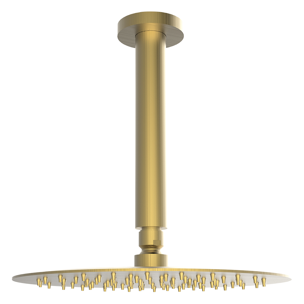 Κεφαλή ντους ανακλινόμενη Ø25 x 1 cm με βραχίονα οροφής anticalcare inox, φινίρισμα Brushed Gold της ARMANDO VICARIO σειρά Slim Industrial μοντέλο 800351-201 + 800087-201. Όλες οι σειρές προίόντων ARMANDO VICARIO έχουν σχεδιαστεί με βάση την προσοχή στη λεπτομέρεια και την καινοτομία. Όλα τα προϊόντα έχουν ιδανική σχέση ποιότητας – τιμής.