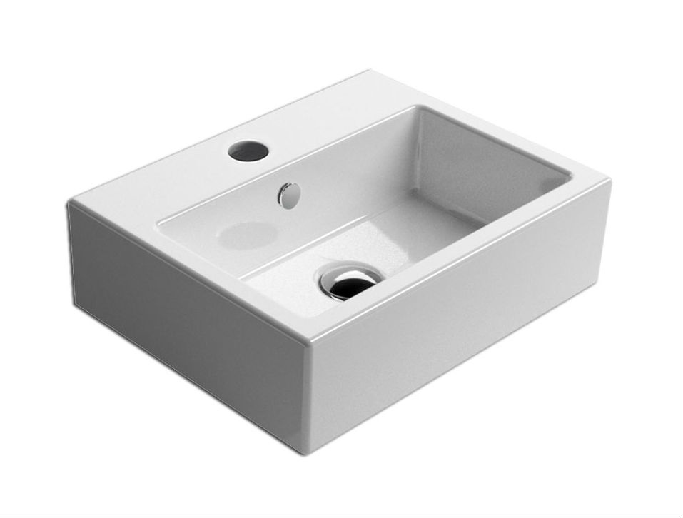 Νιπτήρας πορσελάνης υψηλής ποιότητας νέας κεραμικής υάλωσης Extralaze®, GSI σειρά KUBE 8985 Λευκό 45x35 cm βάθος γούρνας 13 cm, για τοποθέτηση ως κρεμαστός η επικαθήμενος (για έπιπλο μπάνιου). Προαιρετικός εξοπλισμός: πετσετοκρεμάστρα PAKQ45, η οποία δεν συμπεριλαμβάνεται στην τιμή. Άριστη ποιότητα που εξασφαλίζει την απαιτούμενη αντοχή και διαχρονικότητα.