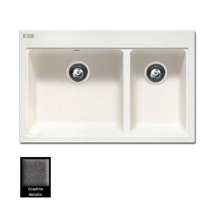 Ένθετος νεροχύτης ορυκτού γρανίτη με δύο ασύμμετρες γούρνες χωρίς ποδιά, Carron Phoenix μοντέλο: FIJI Graphite 5200 80x52 cm. Διατίθεται επιπλέον σε αποχρώσεις Cappuccino, Ivory, White, Espresso, Beige, Oyster & Silver Stone. Μια πλήρης γκάμα νεροχυτών, που διακρίνονται για την εξαιρετική τους αντοχή, την υψηλή ποιότητα και τα φυσικά χρώματα, συνδυάζουν άψογα την κομψότητα και την εργονομία.