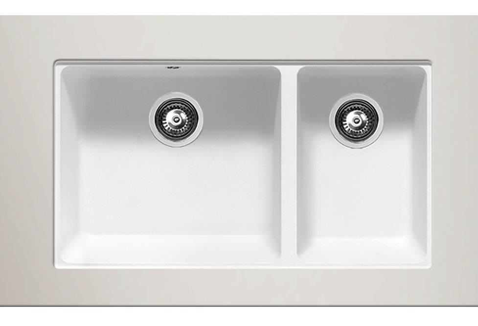 Υποκαθήμενος νεροχύτης ορυκτού γρανίτη με δύο ασύμμετρες γούρνες χωρίς ποδιά, Carron Phoenix μοντέλο: FIJI 5200U White 80x46 cm. Διατίθεται επιπλέον σε αποχρώσεις Cappuccino, Graphite, Oyster & Silver Stone. Μια πλήρης γκάμα νεροχυτών, που διακρίνονται για την εξαιρετική τους αντοχή, την υψηλή ποιότητα και τα φυσικά χρώματα, συνδυάζουν άψογα την κομψότητα και την εργονομία.